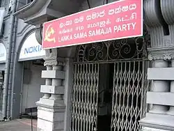 | Lanka Sama Samaja Party tamoul : லங்கா சமசமாஜக் கட்சி singhalais : ලංකා සම සමාජ පක්ෂය anglais : Lanka Equal Society Party | |