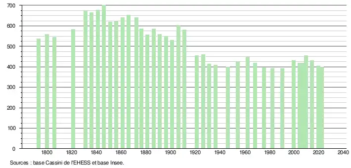 - ↑ Fiches Insee - Populations de référence de la commune pour les années 2006, 2007, 2008, 2009, 2010, 2011, 2012, 2013, 2014, 2015, 2016, 2017, 2018, 2019, 2020, 2021 et 2022.