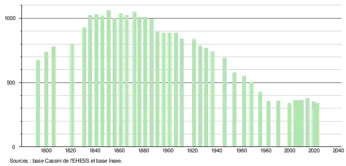 341 hab. (2022 en évolution de −12,34 % par rapport à 2016en évolution de −12,34 % par rapport à 2016)