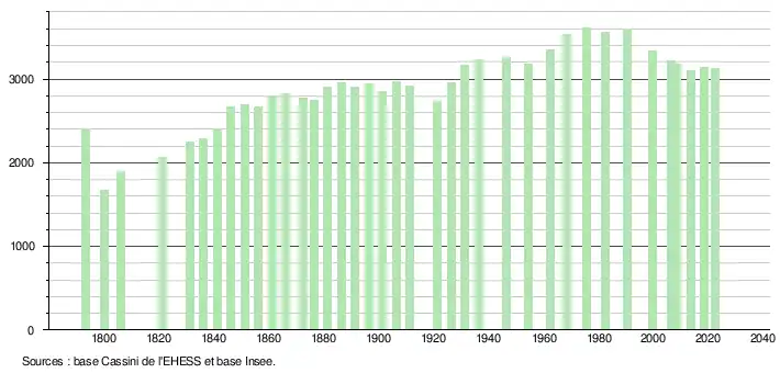 - ↑ Population municipale de référence en vigueur au 1er janvier 2025, millésimée 2022, définie dans les limites territoriales en vigueur au 1er janvier 2024, date de référence statistique : 1er janvier 2022.