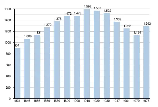 - Sources : INS, Rem. : 1831 jusqu'en 1970 = recensements, 1976 = nombre d'habitants au 31 décembre.