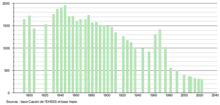 - ↑ Fiches Insee - Populations de référence de la commune pour les années 2006, 2007, 2008, 2009, 2010, 2011, 2012, 2013, 2014, 2015, 2016, 2017, 2018, 2019, 2020, 2021 et 2022.