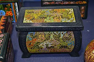 Depuis la période coloniale, une grande variété d’articles en bois sont traités de la même manière. Le bois le plus traditionnel pour la laque est le linaloë (genre Burseraceae ). Il est populaire pour son odeur forte et agréable, semblable à la lavande, mais il est devenu rare[18],[23]. Les bonnes pièces sont toujours en bois dur ou semi-dur[23], mais la plupart sont maintenant en bois d'avocat ou de pin qui est bouilli pour éliminer la résine[2]. De l'essence de Linaloé peut être ajoutée pour l'odeur[4],[6]. Dans le passé, les fabricants de laque créent également des objets en bois, mais avec l'introduction d'outils électriques pour le travail du bois, cet aspect est sous-traité à des menuisiers locaux qui peuvent en réduire les coûts[5],[26]. Cependant, les pièces de bois doivent être complètement sèches, finement poncées et fissurées avant le début du laquage[23],[27].