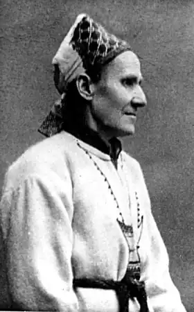 Larin Paraske ( -) est une poétesse orale ingrienne[1]. Elle est considérée comme une figure clé de la poésie folklorique finlandaise et est surnommée la « Mnémosyne finlandaise »[2]. Parmi ses auditeurs fréquents figurent plusieurs artistes nationalistes romantiques tels que Jean Sibelius, qui cherche l'inspiration dans ses interprétations de Kalevala, un poème épique composé du folklore finlandais par Elias Lönnrot[3]. Paraske peut réciter plus de 32 000 vers de poésie, ce qui fait d'elle une importante source de la culture carélienne[4].