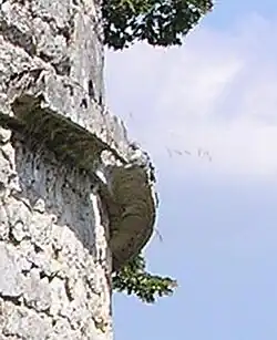 D'autre-part, le larmier, encore nommé « radière », est un bandeau en saillie sur la façade des pigeonniers, destiné à interdire la montée des prédateurs (fouines, belettes, etc.).