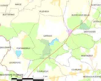 - ↑ « Orthodromie entre Larnaud et Montmorot », sur fr.distance.to (consulté le ).