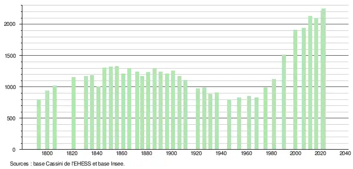 - ↑ Fiches Insee - Populations de référence de la commune pour les années 2006, 2007, 2008, 2009, 2010, 2011, 2012, 2013, 2014, 2015, 2016, 2017, 2018, 2019, 2020, 2021 et 2022.