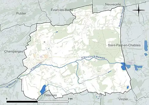 Les communes limitrophes sont Champanges, Féternes, Neuvecelle, Publier, Saint-Paul-en-Chablais, Vinzier et Évian-les-Bains.