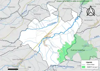 L’inventaire des zones naturelles d'intérêt écologique, faunistique et floristique (ZNIEFF) a pour objectif de réaliser une couverture des zones les plus intéressantes sur le plan écologique, essentiellement dans la perspective d’améliorer la connaissance du patrimoine naturel national et de fournir aux différents décideurs un outil d’aide à la prise en compte de l’environnement dans l’aménagement du territoire. Une ZNIEFF de type 1[Note 2] est recensée sur la commune[17] : la « forêt de Cardeilhac » (593 ha), couvrant 3 communes du département[18] et une ZNIEFF de type 2[Note 3],[17] : les « massifs forestiers de Cardeilhac et de l'Escale » (1 680 ha), couvrant 6 communes du département[19].