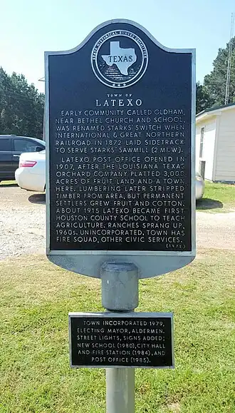 - (en) Cet article est partiellement ou en totalité issu de l’article de Wikipédia en anglais intitulé « Latexo, Texas » (voir la liste des auteurs).