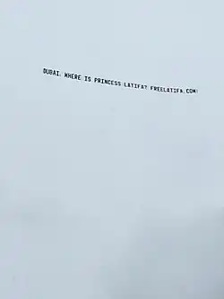 Lors du Derby du Kentucky 2018, un groupe de soutien fait trainer par un avion une banderole où est inscrit « Dubaï : où est la princesse Latifa ? »[66].