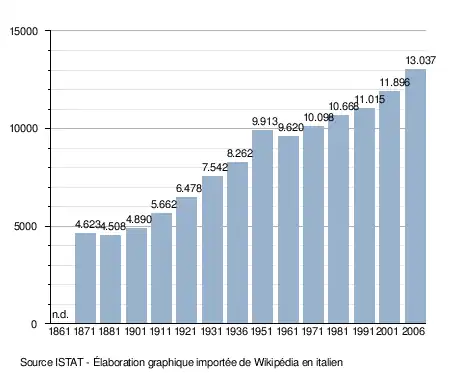 - ↑ (it) Popolazione residente e bilancio demografico sur le site de l'ISTAT.