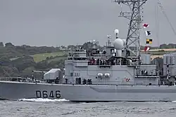 | Armement | 1 canon de calibre 100 mm Mle 68 2 canons de calibre 20 mm F2 4 mitrailleuses Browning M2 de calibre 12.7 mm CRC (Changement Rapide du Canon) 8 missiles MM40 Exocet 1 système Crotale EDIR 2 systèmes Simbad 2 TLT (10 torpilles L5 mod 4 ou MU90) |
