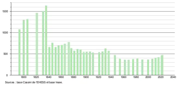 - ↑ Fiches Insee - Populations de référence de la commune pour les années 2006, 2007, 2008, 2009, 2010, 2011, 2012, 2013, 2014, 2015, 2016, 2017, 2018, 2019, 2020, 2021 et 2022.