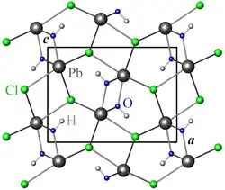 Les cations Pb2+ sont en coordination antiprismatique tétragonale déformée (5+3) de chlore et de groupes hydroxyles : groupes PbCl5(OH)3.
