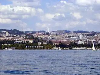 Lausanne (/lɔ.zan/) est une ville suisse située sur la rive nord du Léman. Capitale du canton de Vaud[3], elle est également capitale olympique et chef-lieu du district de Lausanne. Elle est la quatrième ville du pays en nombre d'habitants[4] après Zurich, Genève et Bâle. La commune de Lausanne compte 144 160 habitants au 31 décembre 2023, et l'agglomération lausannoise compte 438 438 habitants au . En 2012, elle concentre 50 % de la population et 60 % des emplois du canton de Vaud[5].