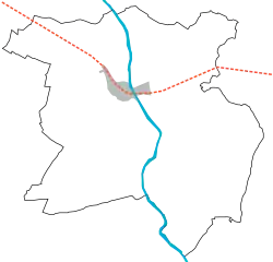 La rive gauche est beaucoup plus plate et son sous-sol est constitué principalement de schiste, avec par endroits des bandes de calcaire et du grès. Cette partie de la ville est par ailleurs recouverte par des dépôts tertiaires et quaternaires de sable, d'argile et de gravier[8].