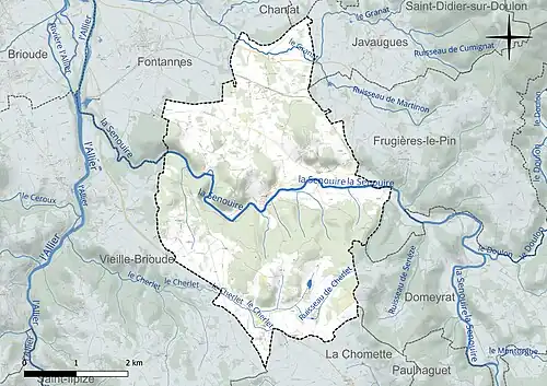 Les communes limitrophes sont Chaniat, Domeyrat, Fontannes, Frugières-le-Pin, Javaugues, La Chomette et Vieille-Brioude.