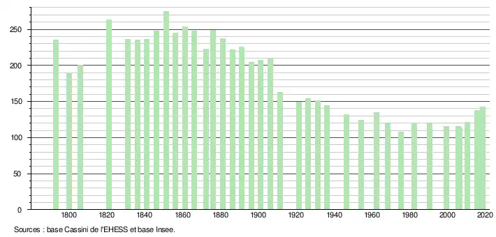 - ↑ Fiches Insee - Populations de référence de la commune pour les années 2006, 2007, 2008, 2009, 2010, 2011, 2012, 2013, 2014, 2015, 2016, 2017 et 2018.