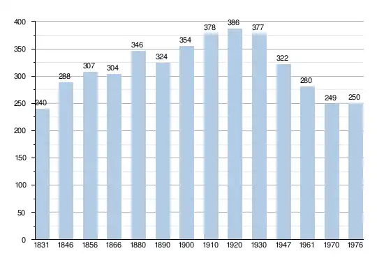- Sources:INS, Rem:1831 jusqu'en 1970=recensements, 1976= nombre d'habitants au 31 décembre