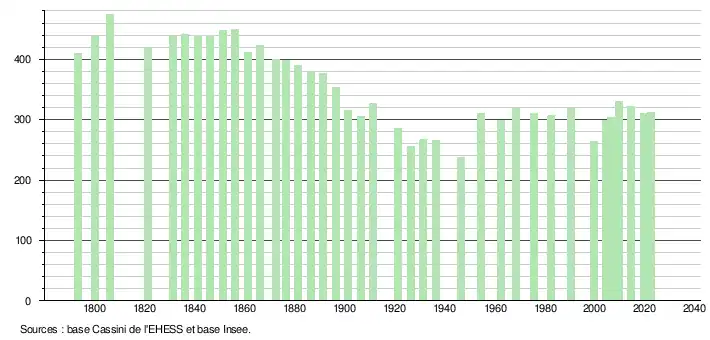- ↑ Fiches Insee - Populations de référence de la commune pour les années 2006, 2007, 2008, 2009, 2010, 2011, 2012, 2013, 2014, 2015, 2016, 2017, 2018, 2019, 2020, 2021 et 2022.