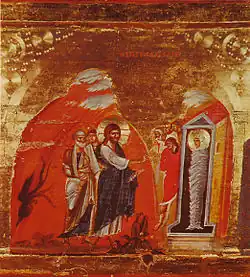 Cette scène de résurrection se situe au début de la Passion du Christ dans l'Évangile selon Jean et apparaît donc comme un signe précurseur de la résurrection de Jésus lui-même (Jn 11:47).