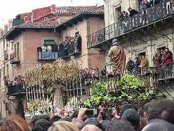 L'une des plus renommées est la Procession de la Rencontre, qui permet la rencontre de trois Pasos représentant saint Jean, la Vierge Marie et le Christ sur la plaza mayor (place de l'ancienne mairie). Une dizaine d'autres chars entourent les trois chars principaux.