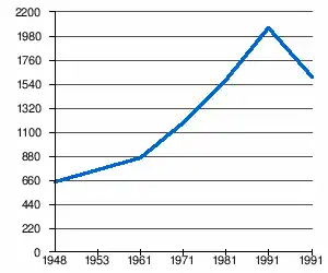 - 1 2 (sq) « Évolution de la population 1948-2011 », sur pop-stat.mashke.org (consulté le ).