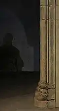 Le Baiser, détail de la silhouette descendant l'escalier. |