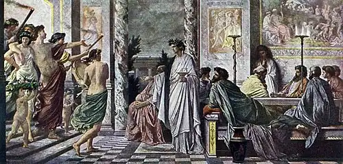 - ↑ Athénée, Deipnosophistes [détail des éditions] (lire en ligne), Livre V (215-217).