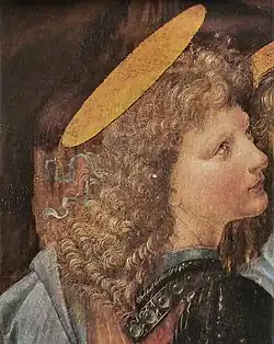Léonard aurait repris le tableau plus tard. On a longtemps considéré qu'il s'agissait de sa première œuvre, mais la maîtrise qu'il montre laisse supposer à la critique moderne qu'il s'agit d'une réalisation plus tardive[3]. Il a peint l'ange de gauche puis a retravaillé le corps du Christ pour l'adoucir. Il a également remodelé le paysage, qui, au départ, devait être une vallée remplie d'arbres. Il l’a remplacé par un cours d’eau qui serpente dans le lointain, un motif apparu dans la peinture flamande (La Vierge du chancelier Rolin de Jan van Eyck) et qui connut une grande vogue en Italie dans les dernières années du XVe siècle[4]. Une quatrième main aurait peint le visage de l'ange de trois-quarts.