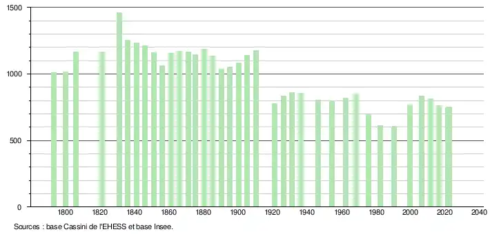 - ↑ Fiches Insee - Populations de référence de la commune pour les années 2006, 2007, 2008, 2009, 2010, 2011, 2012, 2013, 2014, 2015, 2016, 2017, 2018, 2019, 2020, 2021 et 2022.