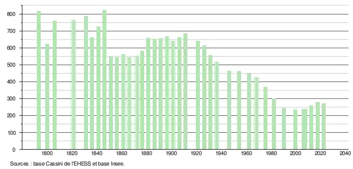 - ↑ Population municipale de référence en vigueur au 1er janvier 2025, millésimée 2022, définie dans les limites territoriales en vigueur au 1er janvier 2024, date de référence statistique : 1er janvier 2022.