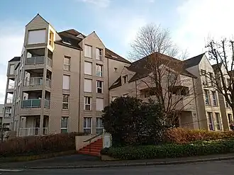 - Le bâtiment d'habitation proche de la place de la Commune construit par l'architecte Martin Schulz van Treeck en 1976.