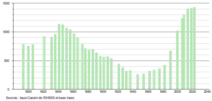 - ↑ Fiches Insee - Populations de référence de la commune pour les années 2006, 2007, 2008, 2009, 2010, 2011, 2012, 2013, 2014, 2015, 2016, 2017, 2018, 2019, 2020, 2021 et 2022.