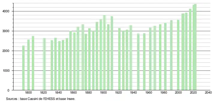 - ↑ Fiches Insee - Populations de référence de la commune pour les années 2006, 2007, 2008, 2009, 2010, 2011, 2012, 2013, 2014, 2015, 2016, 2017, 2018, 2019, 2020, 2021 et 2022.