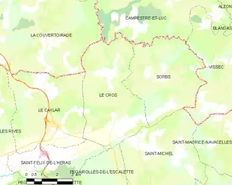 - ↑ « Orthodromie entre Le Cros et Le Caylar », sur fr.distance.to (consulté le ).