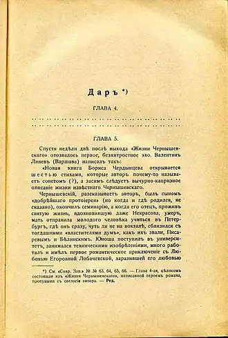 Le quatrième chapitre du Don est un « livre dans le livre » : la biographie de l'écrivain Nikolaï Tchernychevski, rédigée par le héros principal du roman. Nabokov y a exprimé son peu de sympathie pour la figure de Tchernychevski.