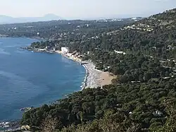 Entrée de la plage de Camp Long, baie d'Agay et massif de l'Esterel
