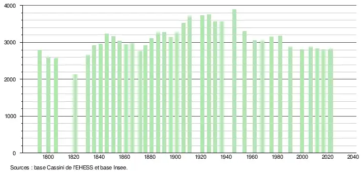 - ↑ Fiches Insee - Populations de référence de la commune pour les années 2006, 2007, 2008, 2009, 2010, 2011, 2012, 2013, 2014, 2015, 2016, 2017, 2018, 2019, 2020, 2021 et 2022.