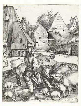 Le Fils prodigue parmi les pourceaux est une gravure sur cuivre au burin datée de 1496, de l'artiste de la Renaissance allemande Albrecht Dürer (1471-1528).