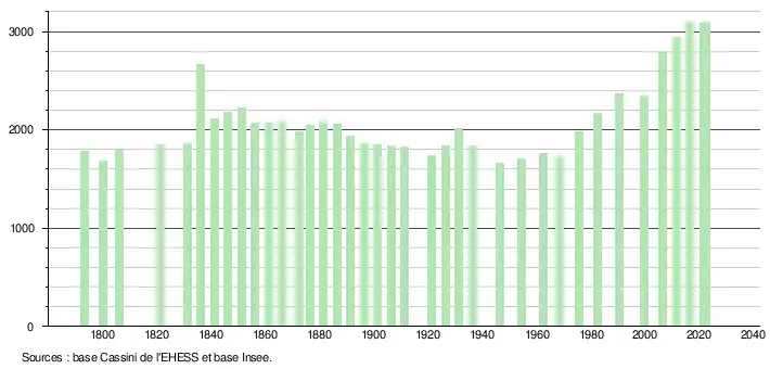 - ↑ Fiches Insee - Populations de référence de la commune pour les années 2006, 2007, 2008, 2009, 2010, 2011, 2012, 2013, 2014, 2015, 2016, 2017, 2018, 2019, 2020, 2021 et 2022.