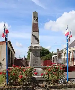 La place : le monument, l'école, la mairie et l'église.