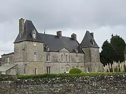 - Manoir du Mesnildot du début du XVIIe siècle[41] : le corps principal est flanqué de deux pavillons latéraux qui s'éclairent par des demi-fenêtres. Un fort chaînage horizontal ceinture complètement l'édifice, séparant ainsi le rez-de-chaussée du premier étage. Les baies sont toutes à linteaux droits.