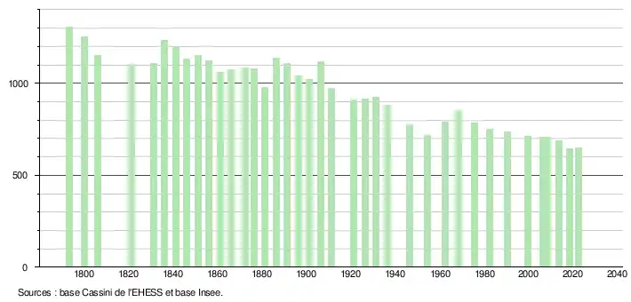 - ↑ Fiches Insee - Populations de référence de la commune pour les années 2006, 2007, 2008, 2009, 2010, 2011, 2012, 2013, 2014, 2015, 2016, 2017, 2018, 2019, 2020, 2021 et 2022.