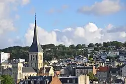 La ville haute fait partie du plateau cauchois : le quartier Dollemard est sa partie la plus élevée (entre 90 et 115 mètres d'altitude). Le plateau est recouvert d’une couche d’argile à silex et d'un limon fertile[8]. Le sous-sol est constitué d'une grande épaisseur de craie, pouvant mesurer jusqu’à 200 mètres de profondeur[9]. En raison de sa pente, la côte est affectée par un risque d'éboulements[10].