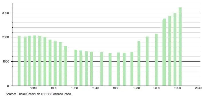 - ↑ Fiches Insee - Populations de référence de la commune pour les années 2006, 2007, 2008, 2009, 2010, 2011, 2012, 2013, 2014, 2015, 2016, 2017, 2018, 2019, 2020, 2021 et 2022.