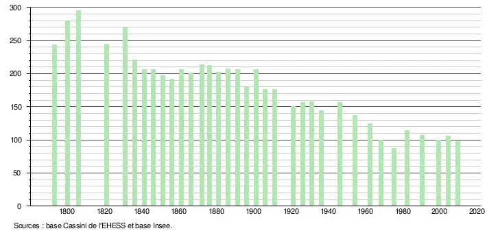 Le maximum de population a été atteint en 1806 avec 295 habitants.