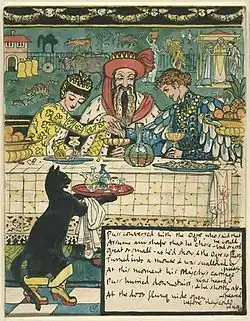 Le Maître chat ou le Chat botté[Note 1] (en italien : Il gatto maestro o il gatto con gli stivali ; en allemand : Der Meisterkater oder der Kater in Stiefeln, ou Der gestiefelte Kater ; en anglais : The Master Cat, or the Booted Cat ou Puss in Boots ; en espagnol : Maese Gato o el gato con botas) est un conte franco-italien en prose racontant l'histoire d'un chat qui utilise la ruse et la tricherie pour offrir le pouvoir, la fortune et la main d'une princesse à son maître mal-né et sans-le-sou. L'auteur italien Giovanni Francesco Straparola semble avoir transcrit la plus ancienne version connue de cette histoire dans son livre Les Nuits facétieuses. La version classique de ce conte est écrite à la fin du XVIIe siècle par Charles Perrault (1628-1703). Elle provient d'un manuscrit illustré, intitulé Les Contes de ma mère l'Oye et daté de 1695, soit deux ans avant la publication du recueil de huit contes de Perrault Histoires ou contes du temps passé, avec des moralités par Barbin en 1697. Le Chat botté connaît instantanément le succès et reste populaire de nos jours, malgré une morale ambiguë.