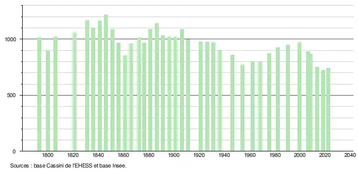 - ↑ Population municipale de référence en vigueur au 1er janvier 2025, millésimée 2022, définie dans les limites territoriales en vigueur au 1er janvier 2024, date de référence statistique : 1er janvier 2022.
